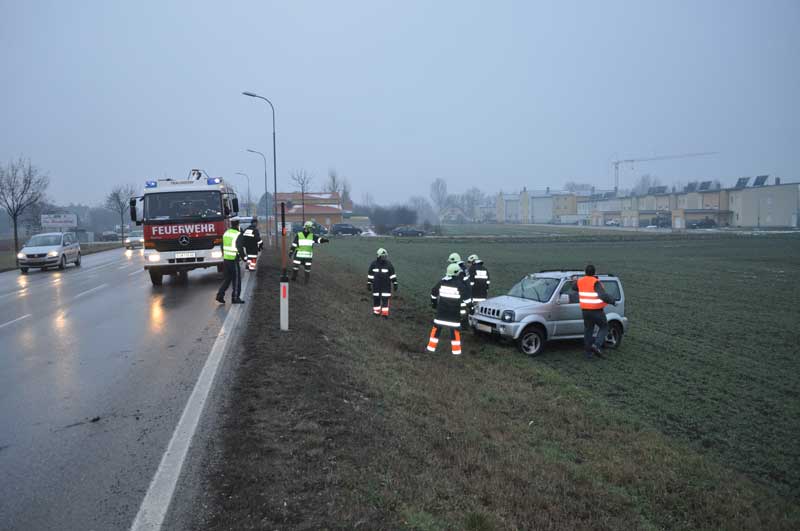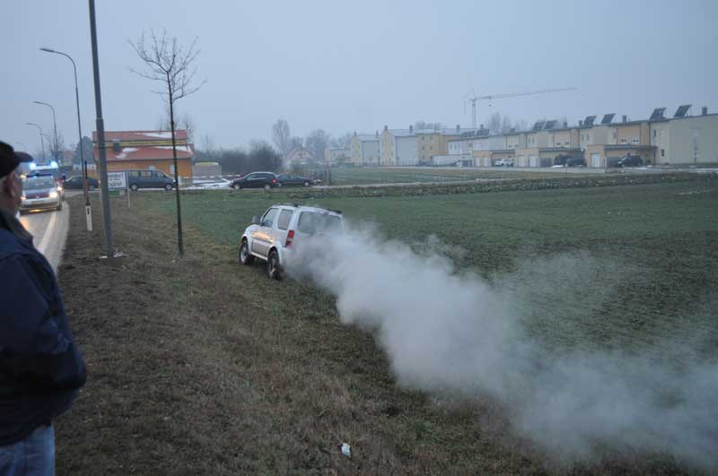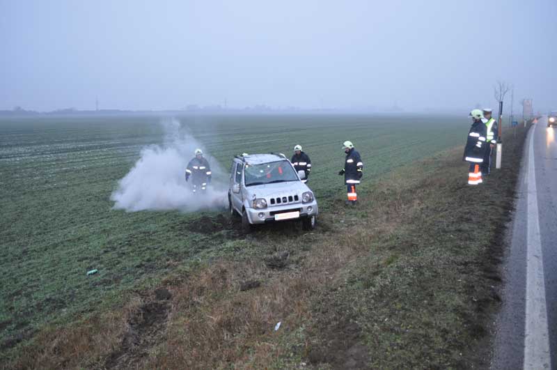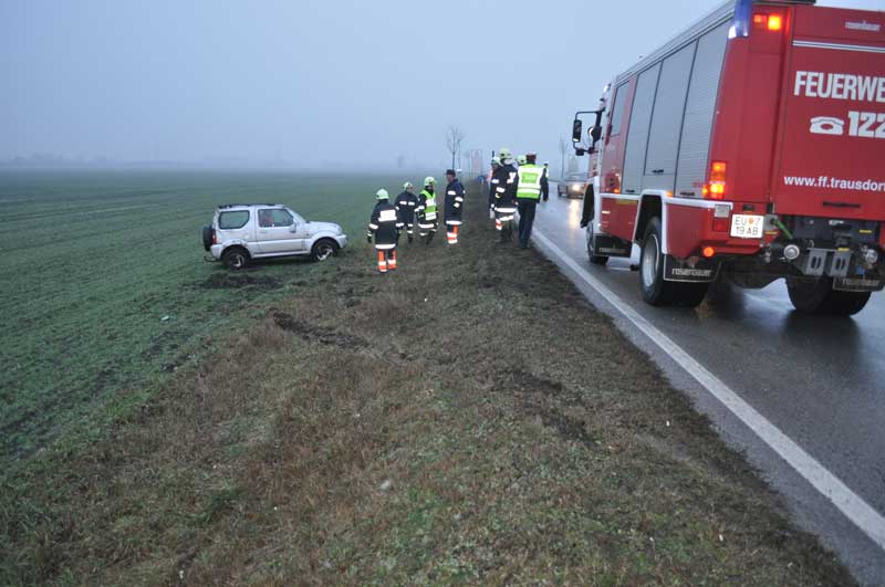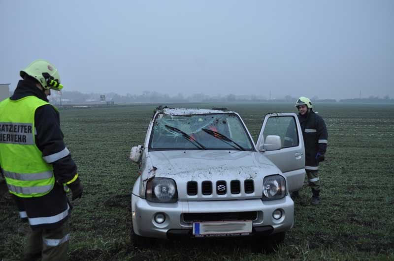 Am 6. Feber wurden wir um 7.30 Uhr mittels Sirene zu einem Verkehrsunfall auf der B52 gerufen. Die Alamierung lautete "T1/Fahrzeugbergung/Trausdorf/Ortsausfahrt Richtung Eisenstadt". Bei der Anfahrt auf die Unfallstelle stellten wir bereits die Anwesenheit der Polizei fest und fanden einen PKW vor, der von der Fahrbahn abgekommen und auf dem Dach im Feld liegen geblieben war. Die Lenkerin war bei unserem Eintreffen nicht mehr an der Unfallstelle, sie blieb unverletzt. Unsere Aufgabe bestand darin, das Fahrzeug wieder umzudrehen und gesichert abzustellen. Da sich der Motor des PKW glücklicherweise wieder starten ließ, konnten wir das schnell durchführen und um 8.00 Uhr die Einsatzbereitschaft im Feuerwehrhaus wieder herstellen.