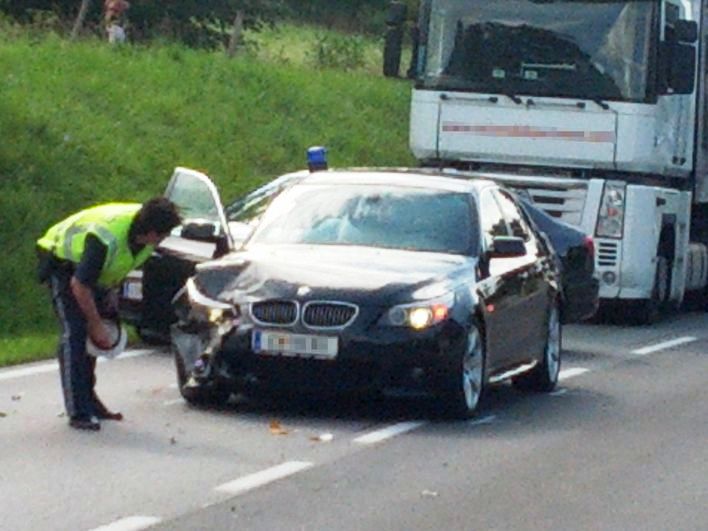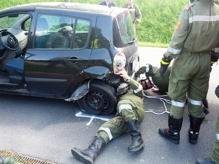 Am Montag dem 4. August 2014 wurden wir um 16.09 Uhr zu einem Verkehrsunfall auf der B52 gerufen, bei dem zwei PKWs zusammengestoßen sind. Als wir am Einsatzort ankamen, sperrte die Polizei bereits die Straße. Es wurde bei diesem Zusammenstoß glücklicherweise niemand verletzt. Beide Fahrzeuge wurde so beschädigt, dass sie nicht mehr fahrtauglich waren und wir sie zur Seite schleppen mussten. Nach die Fahrbahn von uns gereinigt wurde, konnte die Polizei die Straße wieder freigeben.