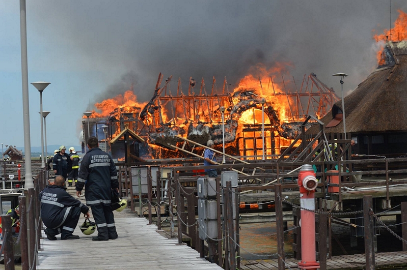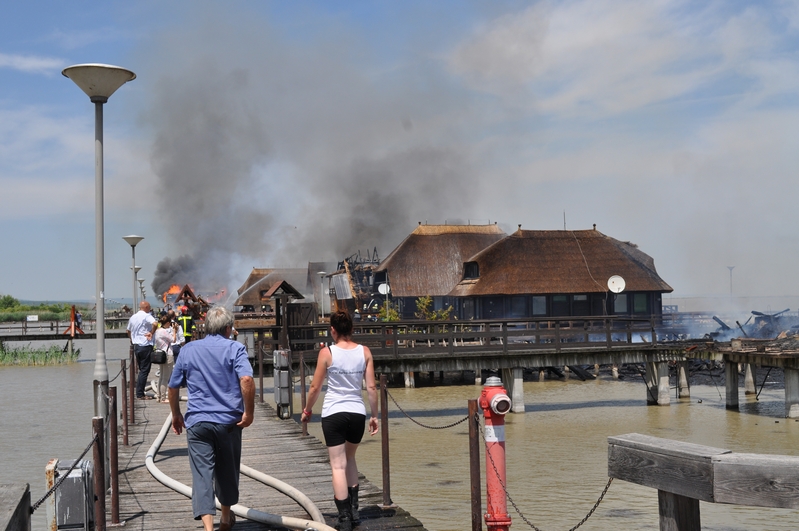 Mehrere Seehütten im vollbrand in Fertőrákos