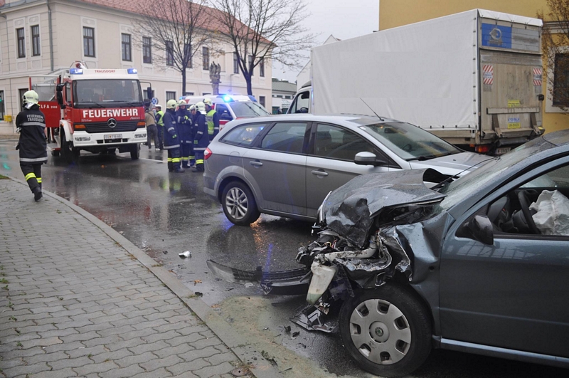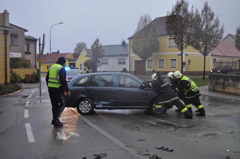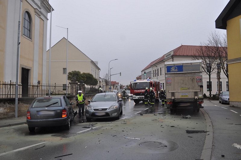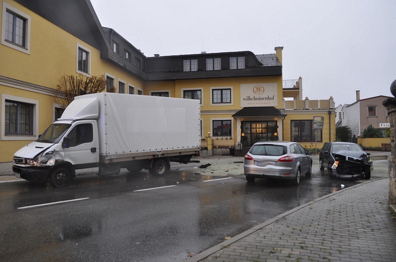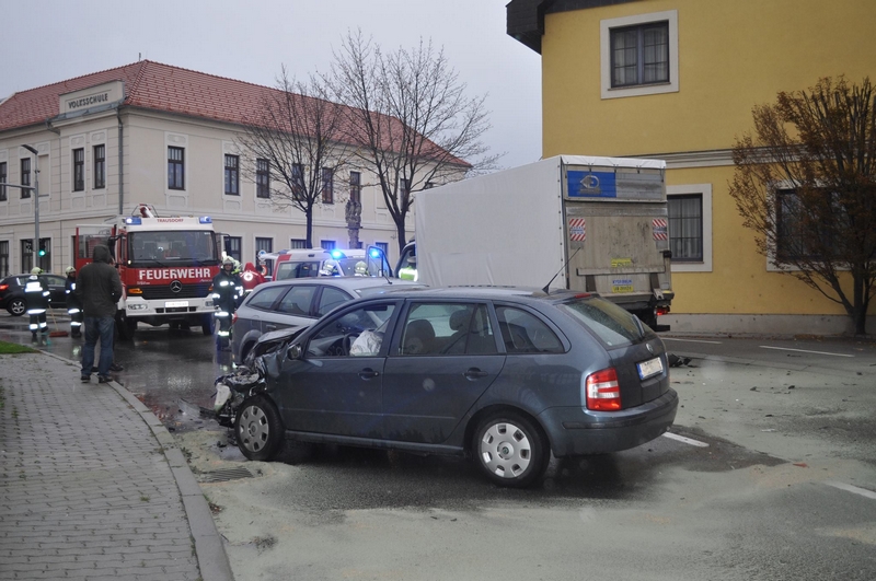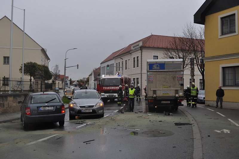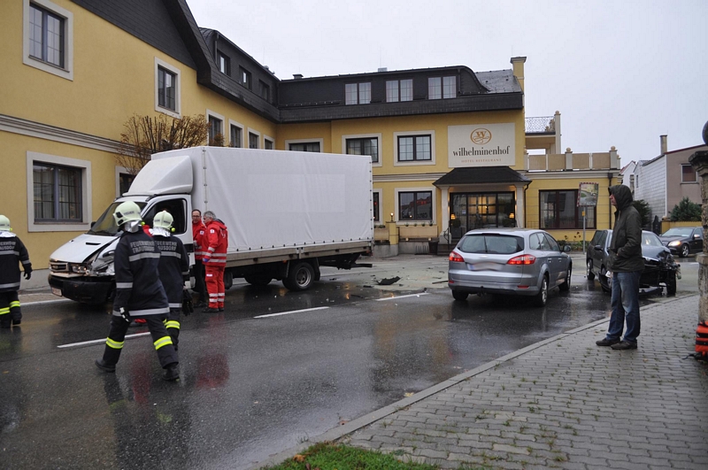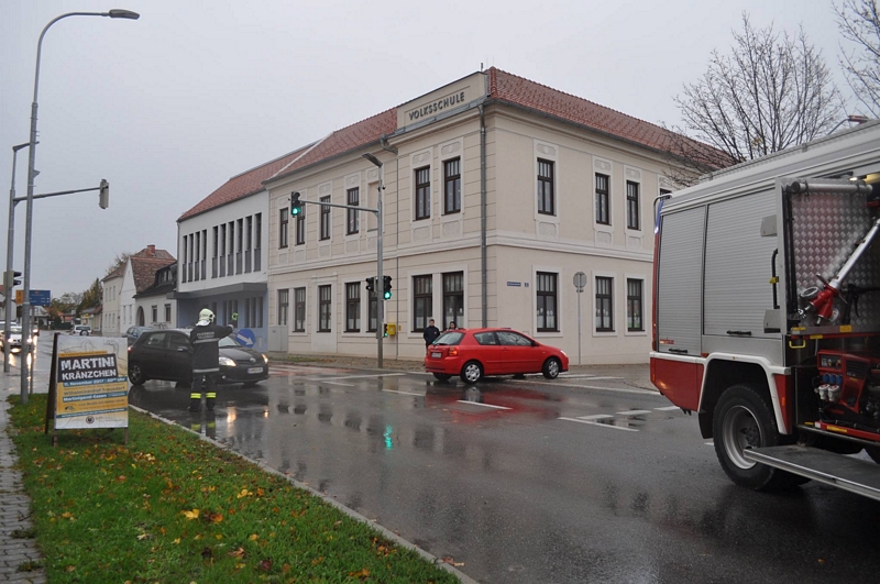 Am 23. Oktober 2017 wurden wir zu einem Verkehrsunfall auf der Hauptstraße bei der Kirche alarmiert, bei dem zwei PKW und ein Kleinlastwagen involviert waren.