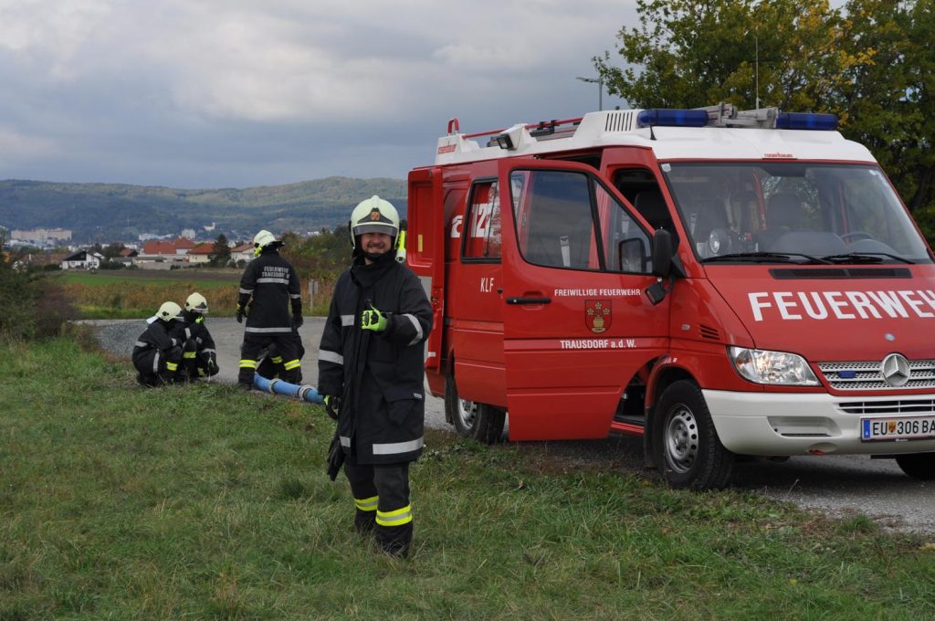 Nach dem Antreten und Exerzieren fuhren wir zum Gelände des alten Flugplatzes. Um die Ausbildungsinhalte der letzten Übung zu festigen, wurde zuerst wieder das Herstellen einer Saugleitung beübt und dann ein umfassender Löschangriff mit B- und C‑Strahlrohren sowie mit dem Wasserwerfer durchgeführt. Alle waren mit viel Spaß und vollem Einsatz bei der Sache und die Übung verlief zur vollen Zufriedenheit der Ausbilder.
